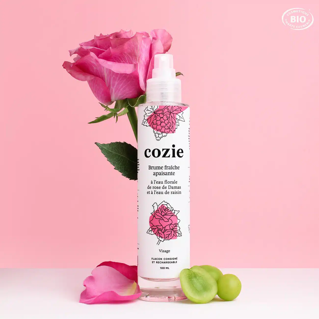 – Eau de raisin : rafraîchit et apaise, prend soin de la peau en douceur.