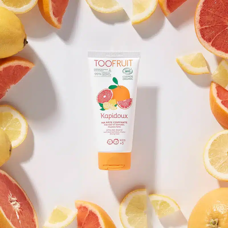 Cette pâte coiffante biologique fixe les cheveux des enfants avec un fini mat, sans résidus. Sa texture à mi-chemin entre cire et gel permet des coiffures structurées et durables, tout en restant facile à manipuler. Son parfum frais de pamplemousse et de citron apporte une touche agréable à chaque coiffure. Adaptée à tous les types de cheveux dès 3 ans, elle convient aux filles comme aux garçons pour un style simple et soigné au quotidien.